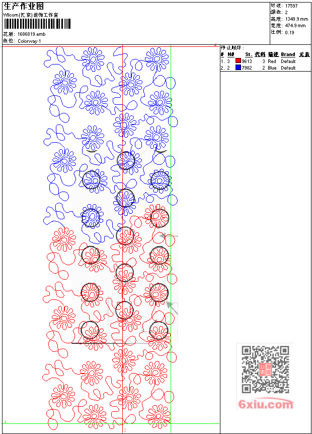 - emb花版参数: 大小:74.50 KB / 尺寸:475*1350[毫米] / 针数:17597针 / 线色:2 / 格式:emb / 版本:7