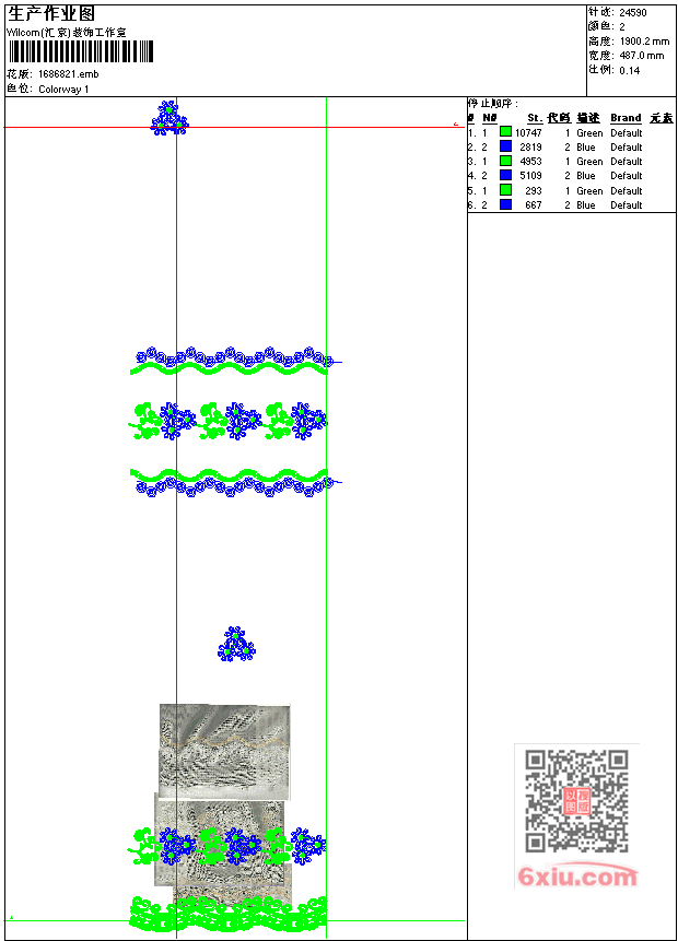 - emb花版参数: 大小:2.12 MB / 尺寸:487*1900[毫米] / 针数:24590针 / 线色:2 / 格式:emb / 版本:7