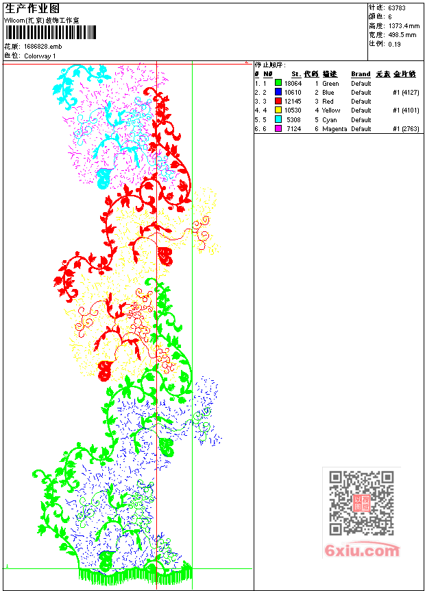 - emb花版参数: 大小:433.50 KB / 尺寸:499*1373[毫米] / 针数:63783针 / 线色:6 / 格式:emb / 版本:7