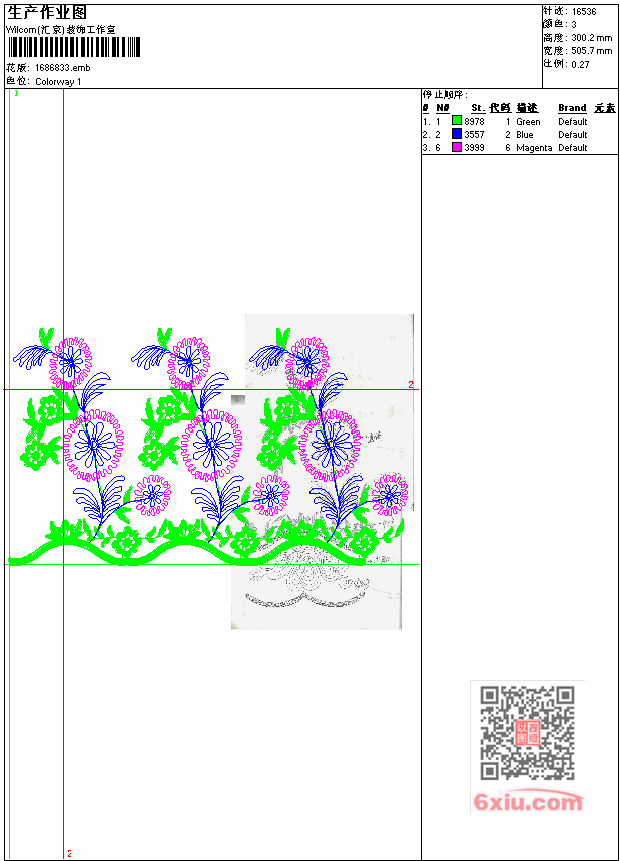 - emb花版参数: 大小:327.00 KB / 尺寸:506*300[毫米] / 针数:16536针 / 线色:3 / 格式:emb / 版本:7