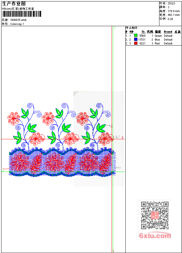 - emb花版参数: 大小:335.50 KB / 尺寸:493*320[毫米] / 针数:25323针 / 线色:3 / 格式:emb / 版本:7