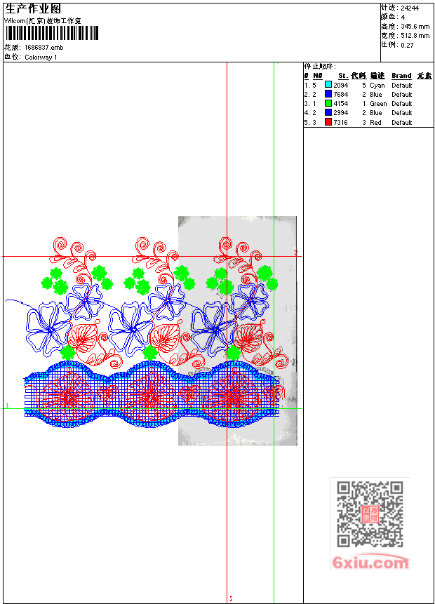 - emb花版参数: 大小:317.50 KB / 尺寸:513*346[毫米] / 针数:24244针 / 线色:4 / 格式:emb / 版本:7