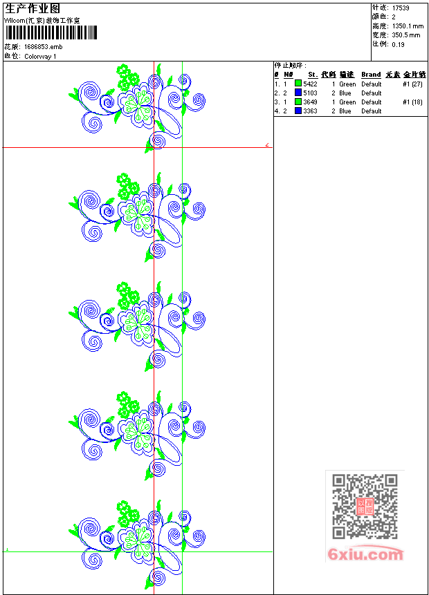 - emb花版参数: 大小:50.50 KB / 尺寸:351*1350[毫米] / 针数:17539针 / 线色:2 / 格式:emb / 版本:7