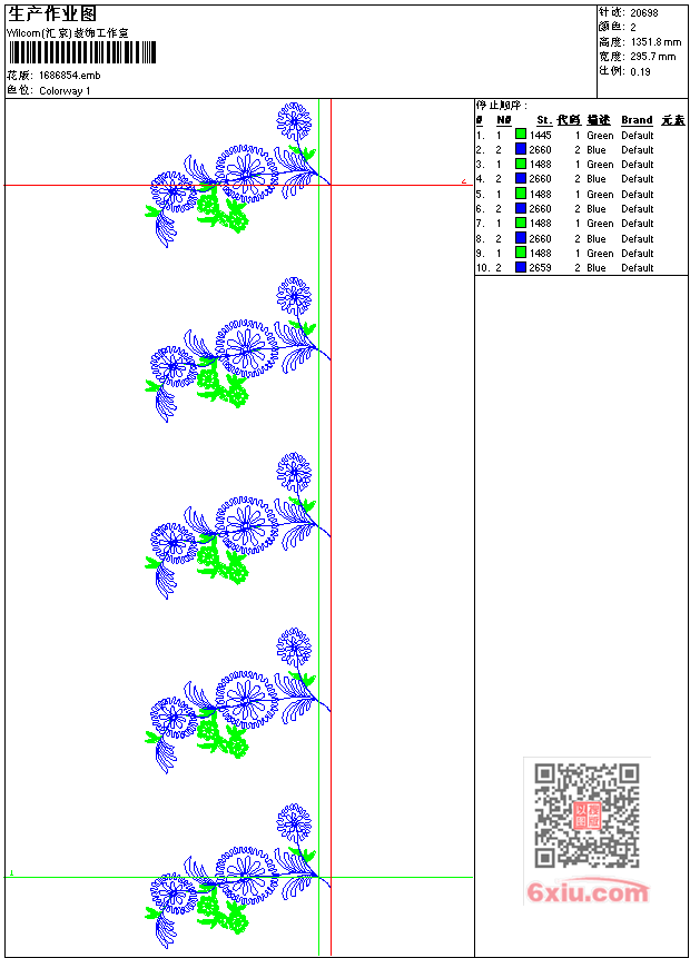 - emb花版参数: 大小:52.50 KB / 尺寸:296*1352[毫米] / 针数:20698针 / 线色:2 / 格式:emb / 版本:7