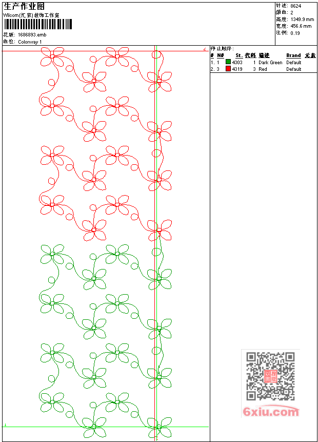 - emb花版参数: 大小:29.00 KB / 尺寸:457*1350[毫米] / 针数:8624针 / 线色:2 / 格式:emb / 版本:8