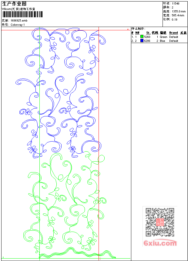 - emb花版参数: 大小:27.50 KB / 尺寸:585*1355[毫米] / 针数:11548针 / 线色:2 / 格式:emb / 版本:7