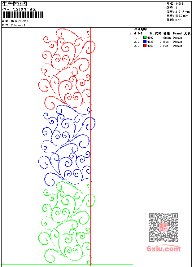 - emb花版参数: 大小:26.00 KB / 尺寸:507*2102[毫米] / 针数:14588针 / 线色:3 / 格式:emb / 版本:7