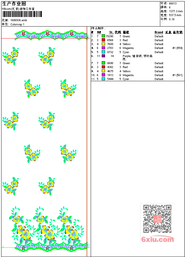- emb花版参数: 大小:396.00 KB / 尺寸:537*1377[毫米] / 针数:66013针 / 线色:6 / 格式:emb / 版本:8