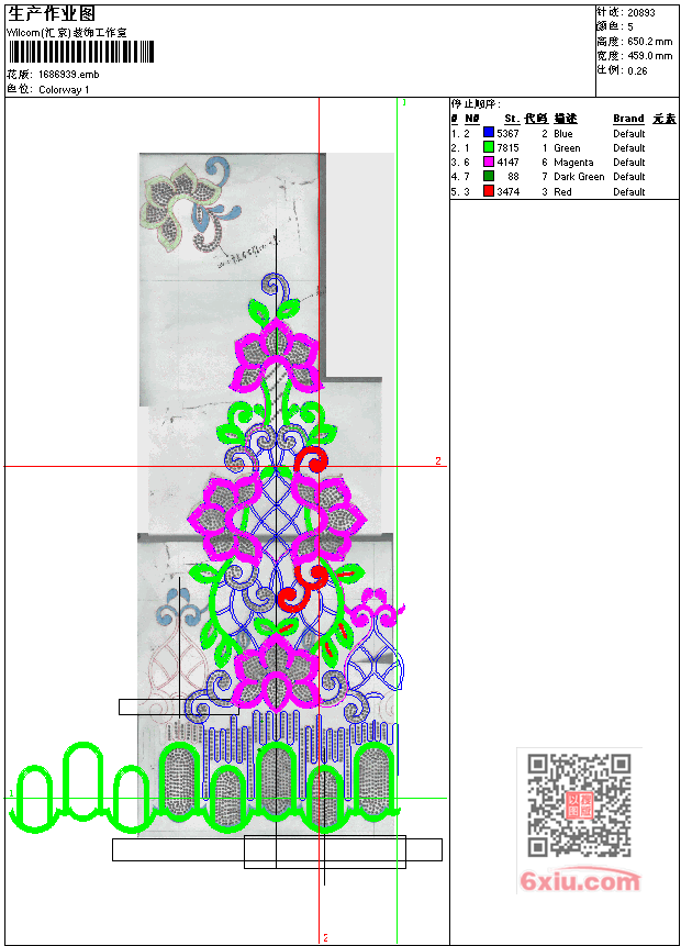 - emb花版参数: 大小:546.50 KB / 尺寸:459*650[毫米] / 针数:20893针 / 线色:5 / 格式:emb / 版本:8