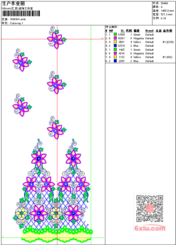 - emb花版参数: 大小:206.00 KB / 尺寸:521*1406[毫米] / 针数:50488针 / 线色:4 / 格式:emb / 版本:7