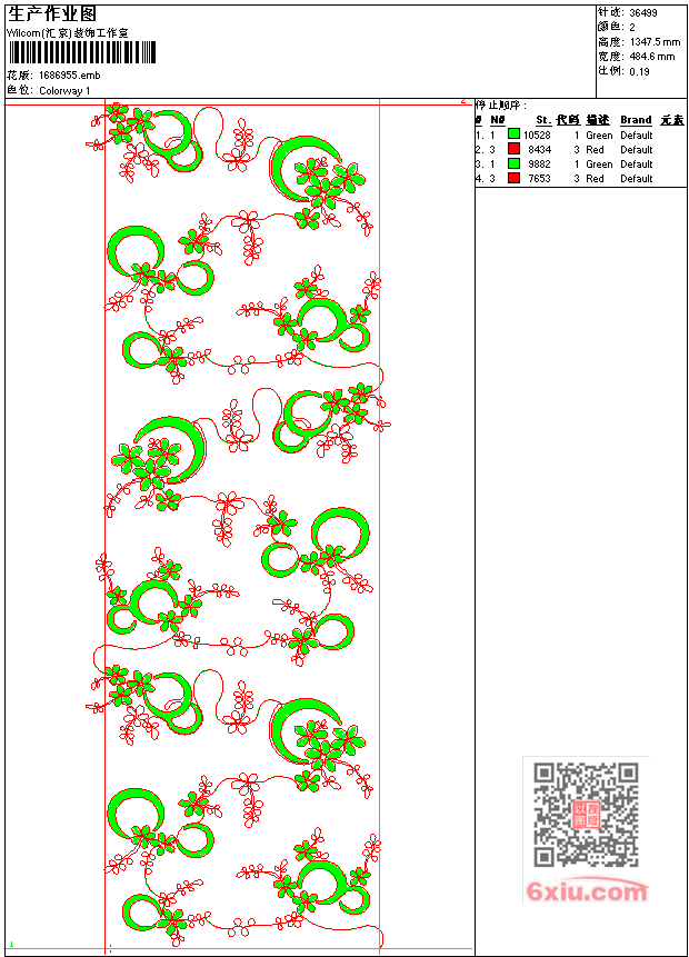 - emb花版参数: 大小:208.00 KB / 尺寸:485*1348[毫米] / 针数:36499针 / 线色:2 / 格式:emb / 版本:7