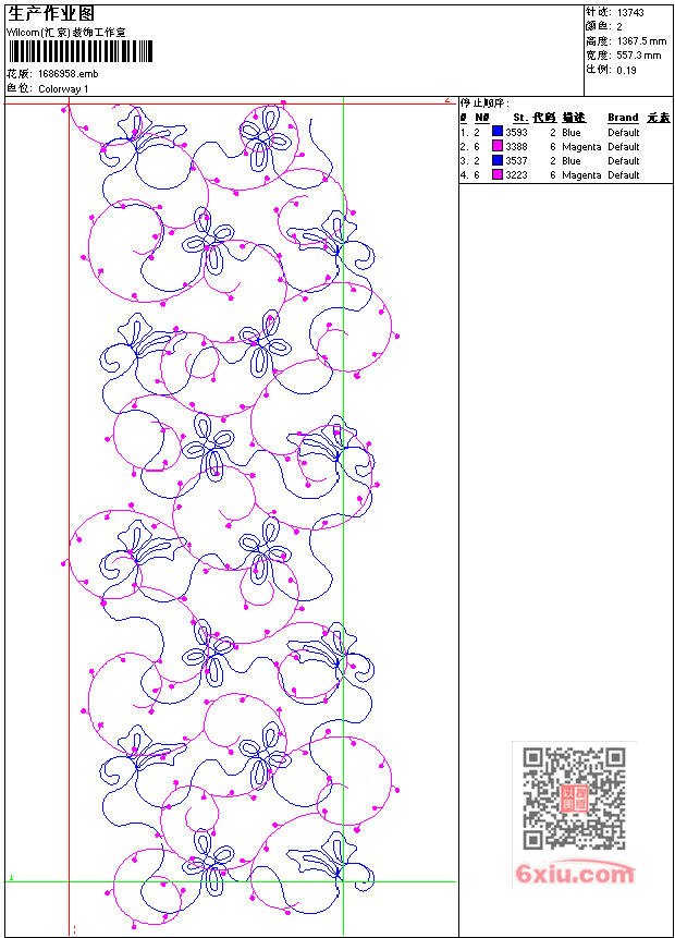 - emb花版参数: 大小:74.00 KB / 尺寸:557*1368[毫米] / 针数:13743针 / 线色:2 / 格式:emb / 版本:7