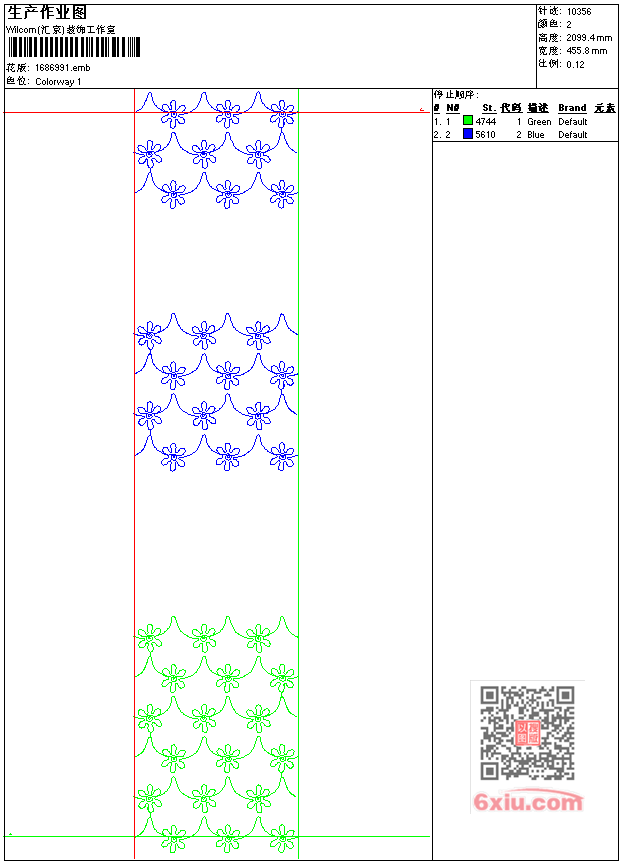- emb花版参数: 大小:19.50 KB / 尺寸:456*2099[毫米] / 针数:10356针 / 线色:2 / 格式:emb / 版本:7