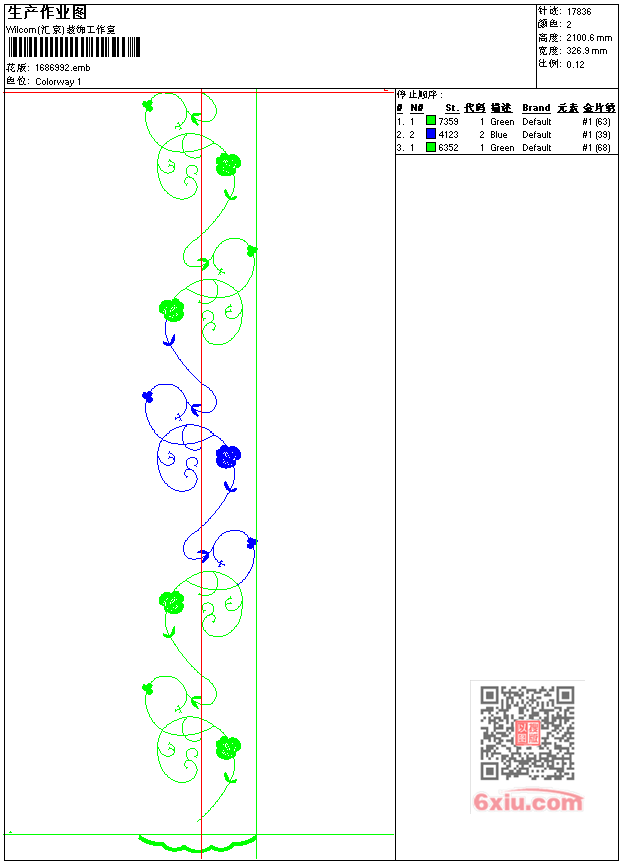 - emb花版参数: 大小:86.50 KB / 尺寸:327*2101[毫米] / 针数:17836针 / 线色:2 / 格式:emb / 版本:7