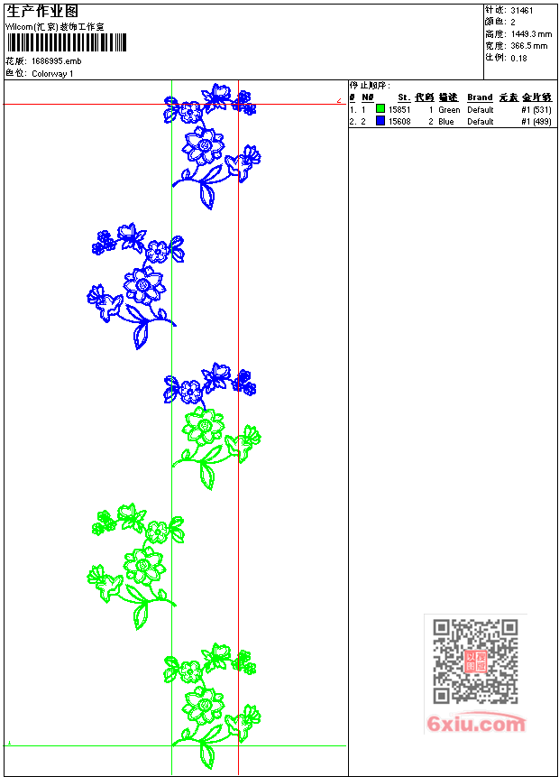 - emb花版参数: 大小:370.00 KB / 尺寸:366*1449[毫米] / 针数:31461针 / 线色:2 / 格式:emb / 版本:7