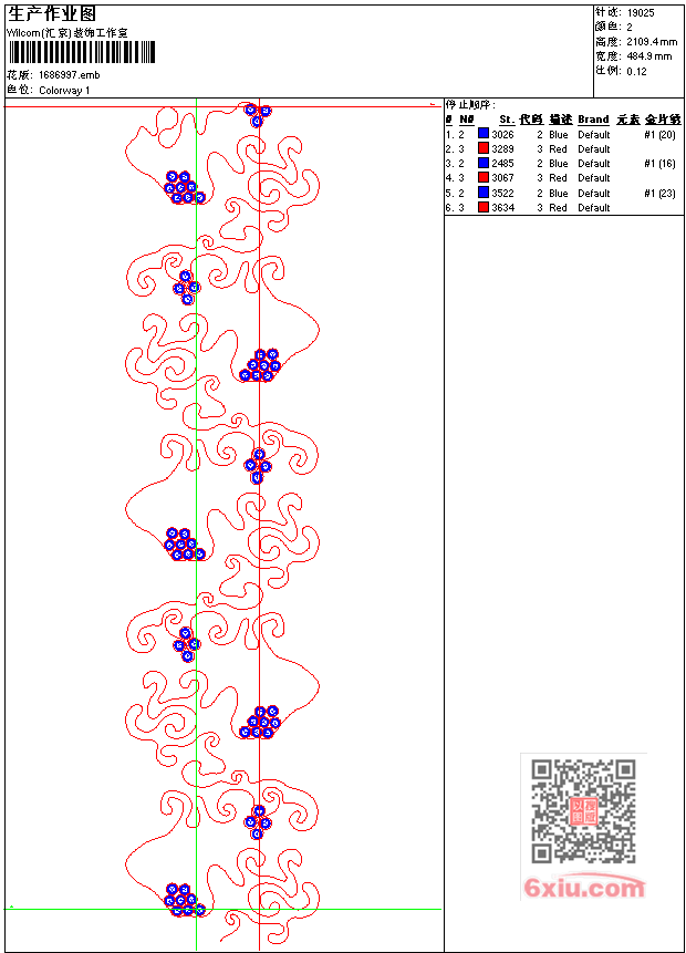 - emb花版参数: 大小:147.00 KB / 尺寸:485*2109[毫米] / 针数:19025针 / 线色:2 / 格式:emb / 版本:7