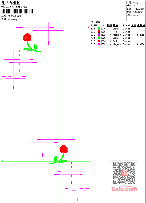 - emb花版参数: 大小:58.00 KB / 尺寸:536*1119[毫米] / 针数:8646针 / 线色:3 / 格式:emb / 版本:7