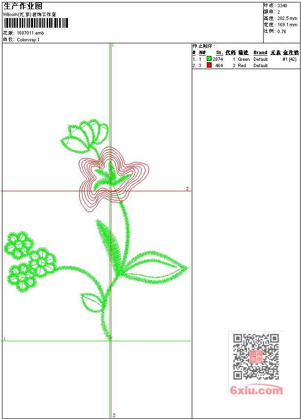 - emb花版参数: 大小:49.50 KB / 尺寸:169*202[毫米] / 针数:3340针 / 线色:2 / 格式:emb / 版本:5.2