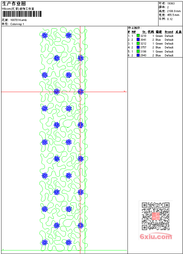 - emb花版参数: 大小:42.50 KB / 尺寸:456*2109[毫米] / 针数:19363针 / 线色:2 / 格式:emb / 版本:7