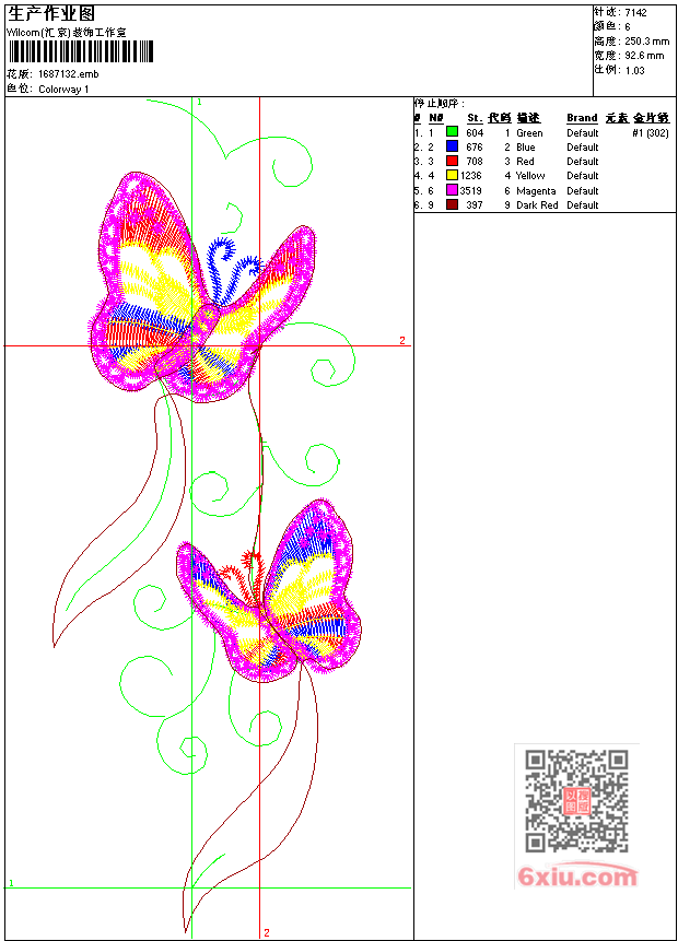 - 版带文件需绣花软件方可打开,可配色打印导出各种格式或直接上机绣。如无绣花软件可下载1:1模拟效果图。