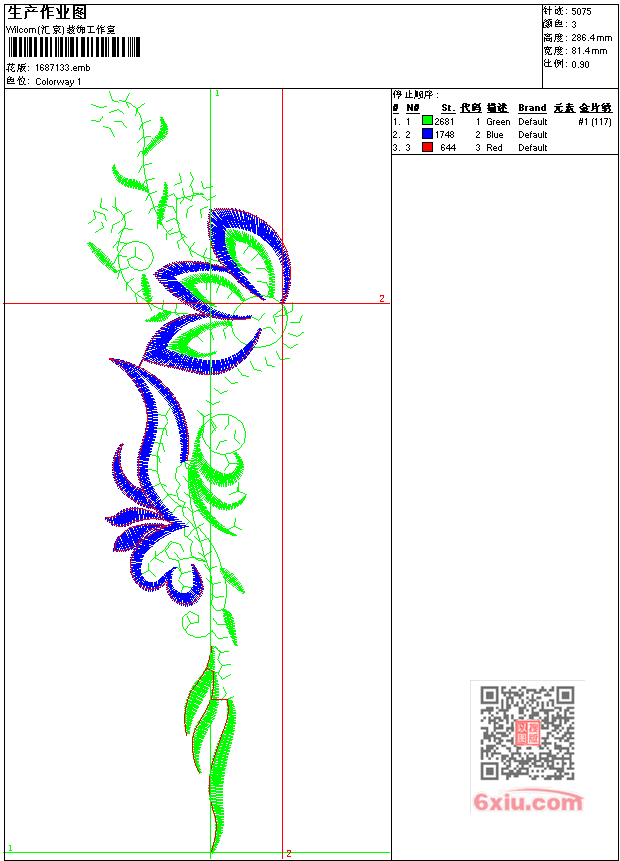 - 版带文件需绣花软件方可打开,可配色打印导出各种格式或直接上机绣。如无绣花软件可下载1:1模拟效果图。