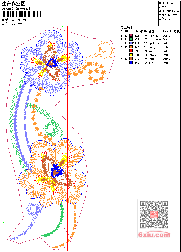 - 版带文件需绣花软件方可打开,可配色打印导出各种格式或直接上机绣。如无绣花软件可下载1:1模拟效果图。