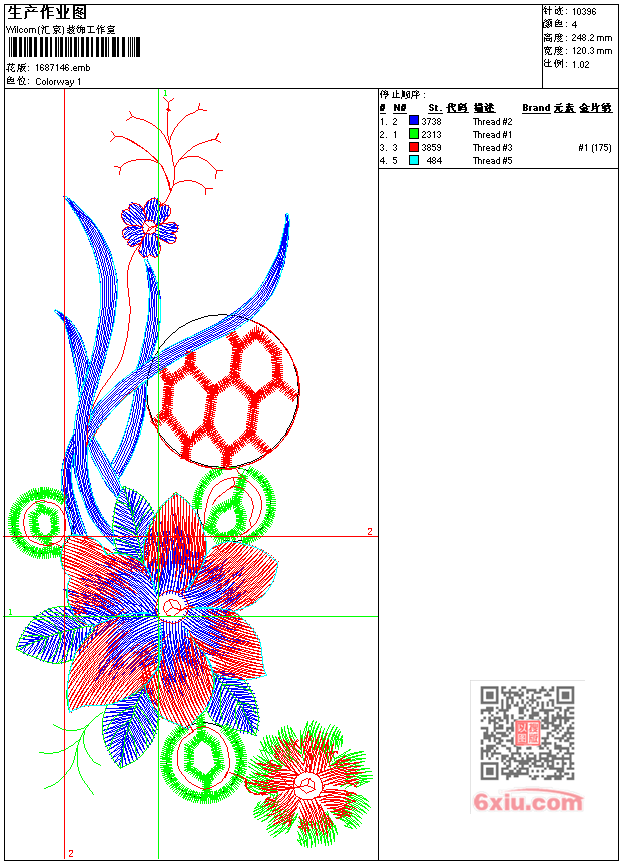 - emb花版参数: 大小:102.50 KB / 尺寸:120*248[毫米] / 针数:10396针 / 线色:4 / 格式:emb / 版本:7