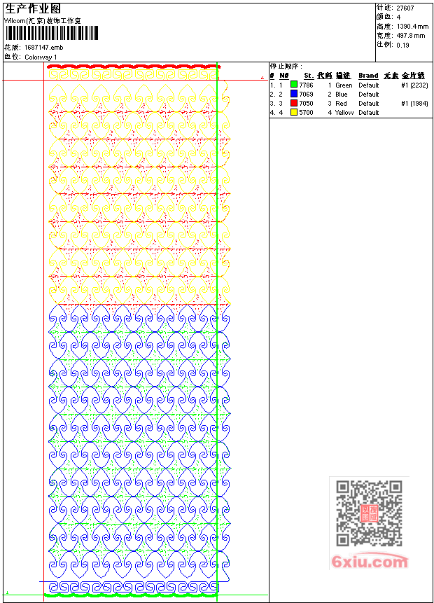 - emb花版参数: 大小:88.00 KB / 尺寸:498*1390[毫米] / 针数:27607针 / 线色:4 / 格式:emb / 版本:7
