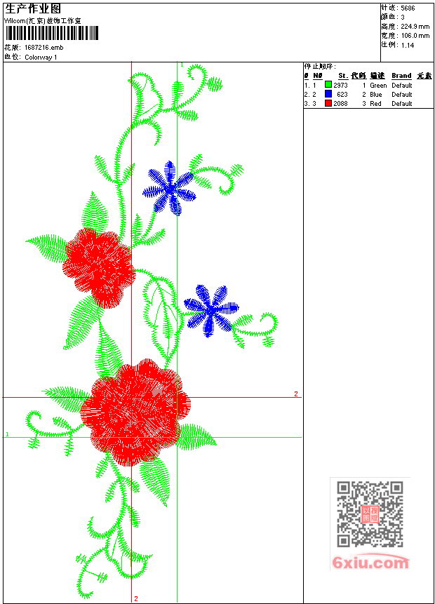 经典叶花 emb花版参数: 大小:46.50 KB / 尺寸:106*225[毫米] / 针数:5686针 / 线色:3 / 格式:emb / 版本:5.2 版带文件需绣花软件方可打开,可配色打印导出各种格式或直接上机绣。如无绣花软件可下载1:1模拟效果图。 PNG图片信息:大小:0.2(MB) /图宽*高:401x851(像素) emb下载 1:1图下载 关闭 相关花版: 经典叶花 经典叶花 经典叶花 孔雀抽象 简洁花 十字绣玫瑰花 经典叶花 经典叶花 经典叶花 小花 经典叶花 凤凰单色 大花家纺 经典叶花 蝴蝶 经典叶花 风荷 格子针法花叶 十字绣针法花叶 大花朵 仙鹤 蝴蝶 经典凤凰 梅花枝头小鸟 经典叶花 房子十字绣针法 南无阿弥陀佛 孔雀包针 大力水手 鹤