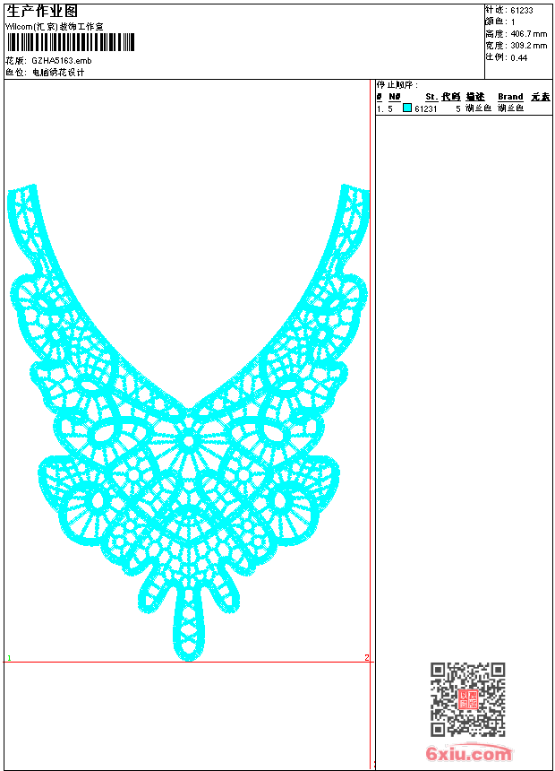 网布V领 emb花版参数: 大小:285.00 KB / 尺寸:309*407[毫米] / 针数:61233针 / 线色:1 / 格式:emb / 版本:9 版带文件需绣花软件方可打开,可配色打印导出各种格式或直接上机绣。如无绣花软件可下载1:1模拟效果图。 PNG图片信息:大小:1.3(MB) /图宽*高:1170x1539(像素) emb下载 1:1图下载 关闭 相关花版: 抽象网格 复杂几何裤衣 经典大花家纺 扭麻花V领 简单花朵组合 愤怒的小鸟 V领抽象 网布摆边 提包蝴蝶 高傲猫 sayka 对称抽象蝴蝶 袖肩主题 汽车 亮片 多主题针法V领 抽象花 它它米花领 鸟上枝头 连衣裙经典花叶 小花排列 山寨puma 宠物狗字母 古典大花传统唐装 肩部满绣抽象 V领X状 波浪裙边 字母london club 条状 仙鹤 经典叶花