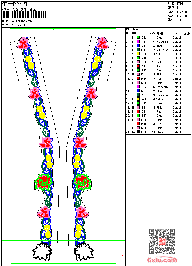 衣领带花 emb花版参数: 大小:285.50 KB / 尺寸:287*636[毫米] / 针数:37941针 / 线色:8 / 格式:emb / 版本:7 版带文件需绣花软件方可打开,可配色打印导出各种格式或直接上机绣。如无绣花软件可下载1:1模拟效果图。 PNG图片信息:大小:1.1(MB) /图宽*高:1086x2405(像素) emb下载 1:1图下载 关闭 相关花版: 水草冒泡 花朵横排 花朵竖排 网布V领 抽象网格 复杂几何裤衣 经典大花家纺 扭麻花V领 简单花朵组合 愤怒的小鸟 V领抽象 网布摆边 提包蝴蝶 高傲猫 sayka 对称抽象蝴蝶 袖肩主题 汽车 亮片 多主题针法V领 抽象花 它它米花领 鸟上枝头 连衣裙经典花叶 小花排列 山寨puma 宠物狗字母 古典大花传统唐装 肩部满绣抽象 V领X状 波浪裙边