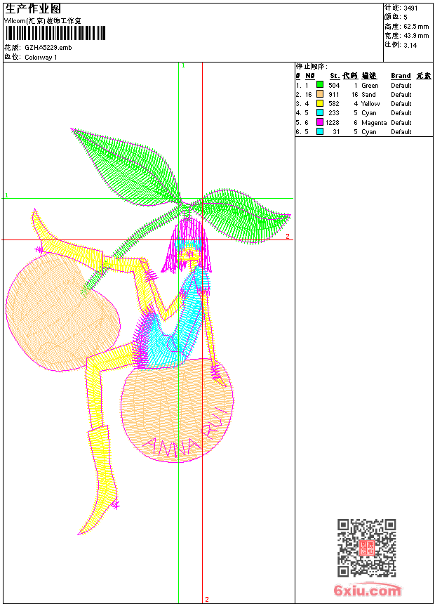 樱桃美女 emb花版参数: 大小:42.50 KB / 尺寸:44*63[毫米] / 针数:3491针 / 线色:5 / 格式:emb / 版本:9 版带文件需绣花软件方可打开,可配色打印导出各种格式或直接上机绣。如无绣花软件可下载1:1模拟效果图。 PNG图片信息:大小:0.1(MB) /图宽*高:166x237(像素) emb下载 1:1图下载 关闭 相关花版: 经典花叶 包针花 字母 小火车童 抽象放射线 写实花叶古典 抽象牛角花 包针楼梯状V领 字母贴布 蜂窝状花叶 山寨章仔fastball 超抽象宗教类 平针抽象 长颈鹿I an the tallest 雕孔圈圈 抽象叶 字母集 激光烧花鹰盾 字母随意划线 字母贴布vintage 长翅膀的骷髅 字母黑线包边 一大二小经典花衣 衣角经典花传统古典 抽象裙边裤脚 花朵横排 网格星形针 复杂抽象裙摆 经典花叶 抽象平针包边