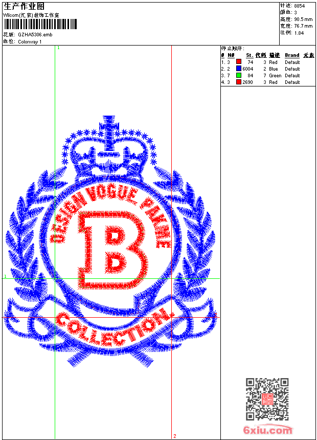 章仔collention emb花版参数: 大小:76.00 KB / 尺寸:77*91[毫米] / 针数:8854针 / 线色:3 / 格式:emb / 版本:9 版带文件需绣花软件方可打开,可配色打印导出各种格式或直接上机绣。如无绣花软件可下载1:1模拟效果图。 PNG图片信息:大小:0.1(MB) /图宽*高:290x343(像素) emb下载 1:1图下载 收藏本图 关闭 相关花版: 抽象对称平针 皮带状抽象 圆形包针抽象花 三角针 章仔club 不规则圆方镂空 抽象包针 镂空网布包针 蝴蝶翅膀V领 方形抽象 多花组合领 孔雀尾巴状花一列 大花绳绣领 简单花排列裙 简单花 三角包针 不规则花组合 包针格状贴布抽象 绳状网布花 十字绣针法衣 主题锁链针领 抽象花圈圈 字母集 狗狗 NBA 抽象贴布包针 简单花排列 条状包针 抽象对称 亮片 抽象珠片