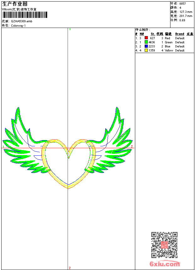 - emb花版参数: 大小:58.50 KB / 尺寸:202*127[毫米] / 针数:8857针 / 线色:4 / 格式:emb / 版本:9