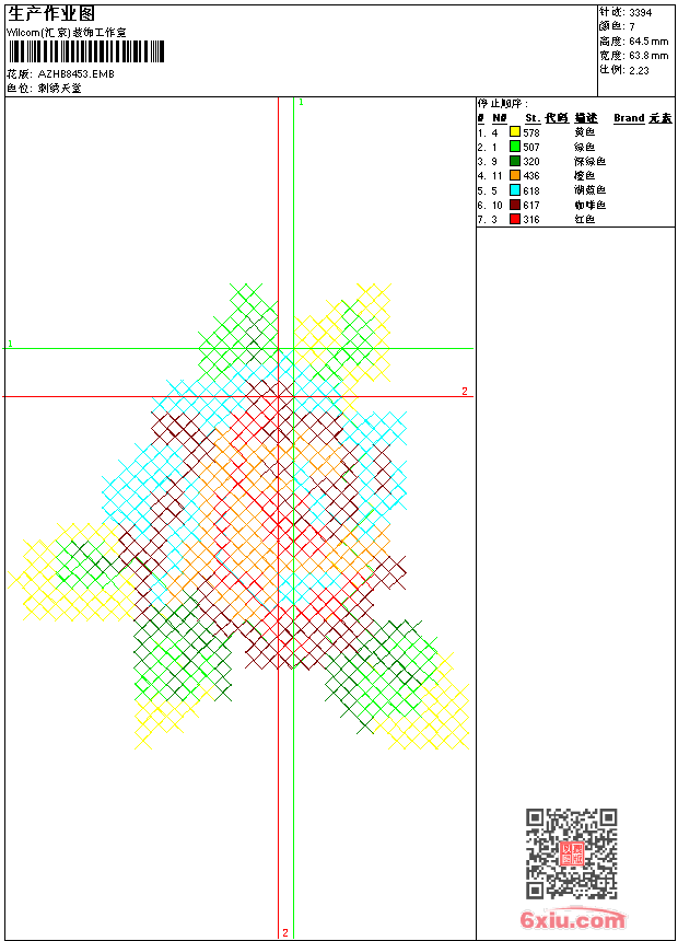 - emb花版参数: 大小:5.31 MB / 尺寸:64*65[毫米] / 针数:3394针 / 线色:7 / 格式:emb / 版本:9