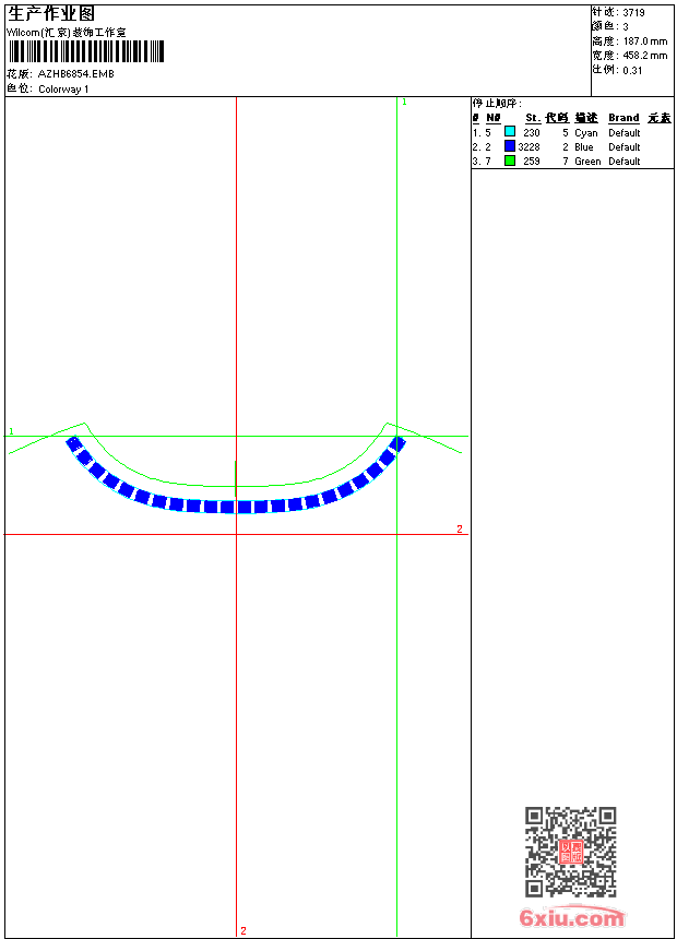 - emb花版参数: 大小:28.00 KB / 尺寸:458*187[毫米] / 针数:3719针 / 线色:3 / 格式:emb / 版本:9