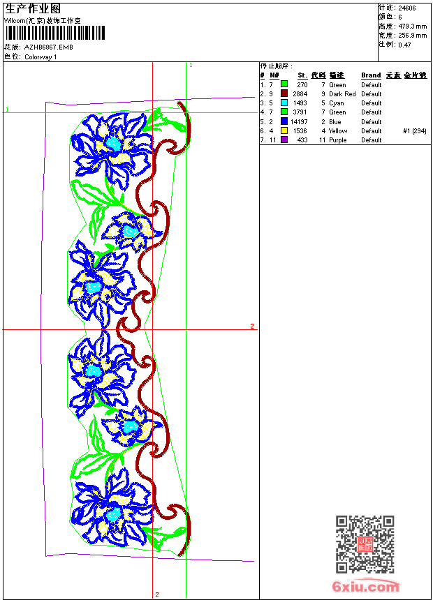 - emb花版参数: 大小:271.00 KB / 尺寸:257*479[毫米] / 针数:24606针 / 线色:6 / 格式:emb / 版本:9