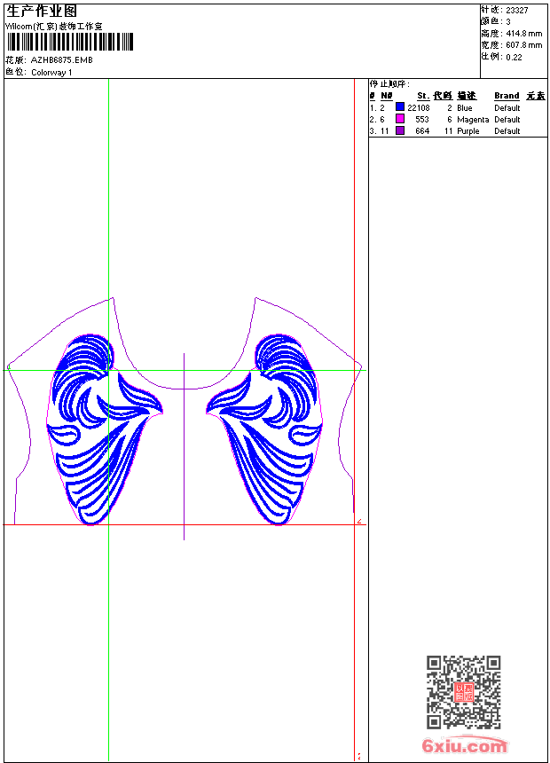 - emb花版参数: 大小:97.00 KB / 尺寸:608*415[毫米] / 针数:23327针 / 线色:3 / 格式:emb / 版本:9