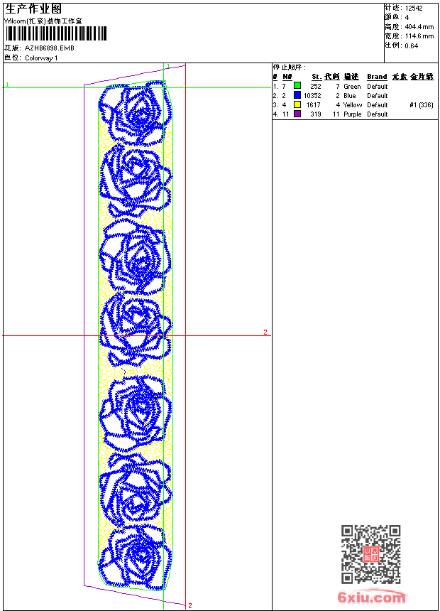 亮片 玫瑰花珠片条 emb花版参数: 大小:126.00 KB / 尺寸:115*404[毫米] / 针数:12542针 / 线色:4 / 格式:emb / 版本:9 版带文件需绣花软件方可打开,可配色打印导出各种格式或直接上机绣。如无绣花软件可下载1:1模拟效果图。 PNG图片信息:大小:0.5(MB) /图宽*高:434x1530(像素) emb下载 1:1图下载 关闭 相关花版: 经典花 简单方格线条 V领抽象线条 抽象几何衣 亮片 珠片简单线条裤 镂空不规则格子胸衣领 几何抽象衣线条 镂空抽象帽状 抽象几何 抽象几何 亮片 珠片浮雕花 亮片 珠片椭圆领 亮片 珠片V领线条 V领包针抽象 亮片 珠片线条花朵 匹绣 多次平针领 匹绣 经典叶花 经典叶花 叶状包针衣 V领抽象镂空几何线条 亮片 线条枝叶长条 亮片 衣线条枝叶 条形简单枝叶 三角花型 抽象主题花纹长条 领抽象主题花纹 亮片 珠片花长条 超级抽象插针花