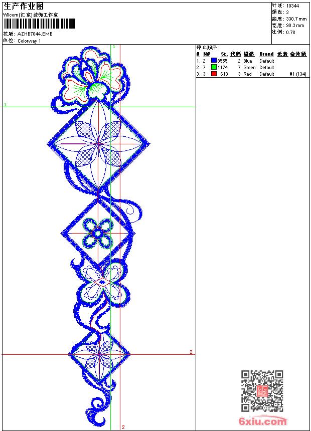 - emb花版参数: 大小:93.00 KB / 尺寸:90*331[毫米] / 针数:10344针 / 线色:3 / 格式:emb / 版本:9