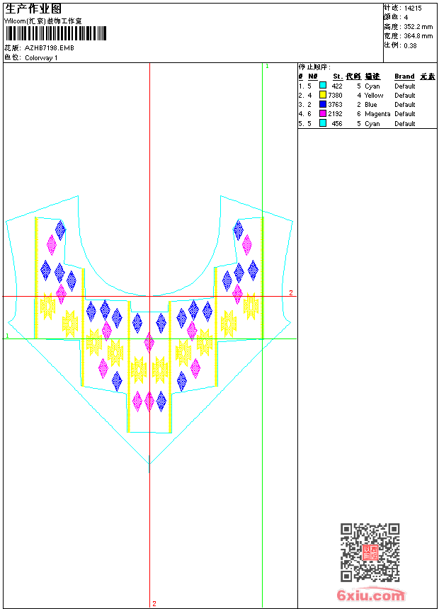 抽象几何领 emb花版参数: 大小:53.50 KB / 尺寸:365*352[毫米] / 针数:14215针 / 线色:4 / 格式:emb / 版本:9 版带文件需绣花软件方可打开,可配色打印导出各种格式或直接上机绣。如无绣花软件可下载1:1模拟效果图。 PNG图片信息:大小:0.5(MB) /图宽*高:1380x1333(像素) emb下载 1:1图下载 关闭 相关花版: 抽象几何组合 简单花 巴黎铁塔paris 传统抽象吉祥 抽象镂空条 复杂几何领 简单包针花 十字绣条 简单花 抽象曲线 领抽象 抽象枝 抽象枝 简单花条 十字绣条 简单领 经典花朵 包针抽象花 包针抽象花 包针抽象花 格子叉叉 匹绣 匹绣 抽象花领 抽象骨头X 字母花仙子 几何复杂抽象衣 匹绣 领抽象 简单花条