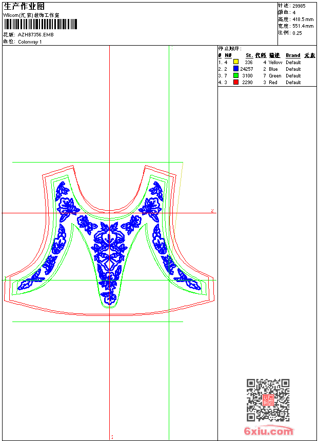衣花 emb花版参数: 大小:179.00 KB / 尺寸:551*418[毫米] / 针数:29985针 / 线色:4 / 格式:emb / 版本:9 版带文件需绣花软件方可打开,可配色打印导出各种格式或直接上机绣。如无绣花软件可下载1:1模拟效果图。 PNG图片信息:大小:1.0(MB) /图宽*高:2086x1583(像素) emb下载 1:1图下载 关闭 相关花版: 衣花 抽象衣领格子包针 几何抽象花 几何抽象条 抽象衣领复杂 抽象衣领 简单花 领花抽象 抽象马赛克条 抽象曲线条 裙边复杂花条 简单花条衣 几何格子领 抽象简单条领 亮片 珠片简单化 领线简单 领抽象包针 格子包针花领 十字绣领条 抽象曲线 简单花衣 钻石几何 衣摆雕孔花 传统花衣 抽象圆圈条 简单叶 亮片 简单花珠片 抽象曲线大眼晴 亮片 珠片匹绣 亮片 叶花条衣