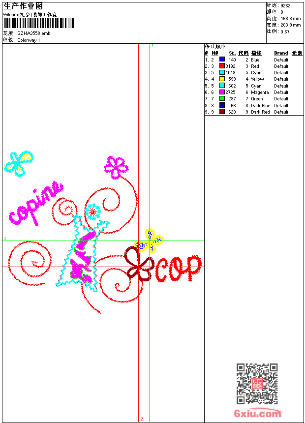 童装花 emb花版参数: 大小:83.50 KB / 尺寸:204*169[毫米] / 针数:9262针 / 线色:8 / 格式:emb / 版本:8 版带文件需绣花软件方可打开,可配色打印导出各种格式或直接上机绣。如无绣花软件可下载1:1模拟效果图。 PNG图片信息:大小:0.2(MB) /图宽*高:772x639(像素) emb下载 1:1图下载 关闭 相关花版: 三角针领 简单曲线点 字母big wasp 鹦鹉鸟 抽象曲线 老鼠蜘蛛侠卡通 抽象曲线花 十字绣裤袋 简单花 亮片 裙边珠片条花 亮片 珠片简单 美女人物 小熊贴布卡通 抽象对称点点 happy monkey 猴子 抽象条圆 简单衣领 男装章仔 花简单 简单衣领 卡通贴布 抽象条裙 皮带条抽象 十字绣衣 字母贴布 花简单衣 裙条花简单 机器人 三角针抽象 瓢虫动物