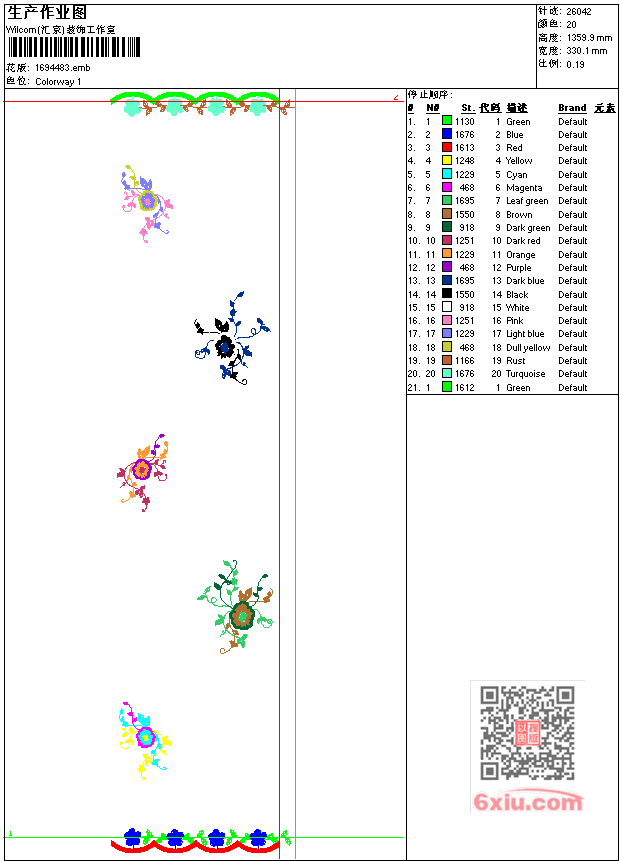 窗帘 emb花版参数: 大小:196.00 KB / 尺寸:330*1360[毫米] / 针数:26042针 / 线色:20 / 格式:emb / 版本:7 版带文件需绣花软件方可打开,可配色打印导出各种格式或直接上机绣。如无绣花软件可下载1:1模拟效果图。 PNG图片信息:大小:1.0(MB) /图宽*高:1249x5144(像素) emb下载 1:1图下载 关闭 相关花版: 窗帘 曲线小孩人物 简单花叶 简笔花条裙 狮子章仔 蝴蝶 莲花 领简单 字母 复杂简笔话抽象 简单花条 字母裤代 小孩卡通 简单花条 男抽象曲线 简笔花衣 字母酒杯 字母cutie 字母 抽象条 鸟 十字绣条 花裙条 字母裤代 裙条复杂 简单花 雕孔花条裙 童装花 三角针领 简单曲线点