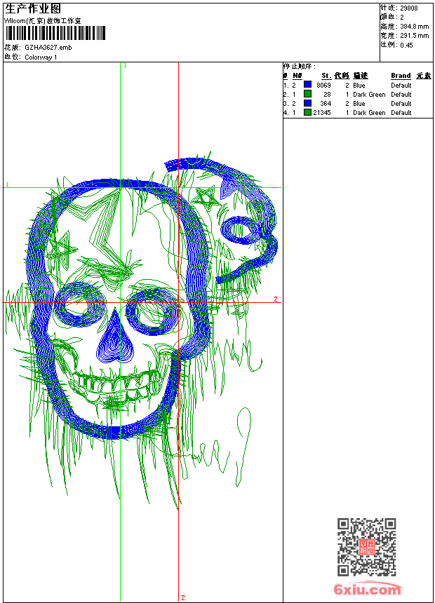 骷髅 emb花版参数: 大小:113.00 KB / 尺寸:292*385[毫米] / 针数:29808针 / 线色:2 / 格式:emb / 版本:9 版带文件需绣花软件方可打开,可配色打印导出各种格式或直接上机绣。如无绣花软件可下载1:1模拟效果图。 PNG图片信息:大小:1.3(MB) /图宽*高:1103x1456(像素) emb下载 1:1图下载 关闭 相关花版: 抽象锁针花 传统花唐装 抽象动物 简单花贴布 玫瑰花领简单 女孩音乐人物 抽象花领胸 亮片 珠片叶肩 抽象花排列 花简单 十字绣玫瑰花 平针花 裙花条 四眼天鸡卡通 唐老鸭卡通 简笔领 简笔羊 抽象花条裙 花条大 简单花 丝袜美女人物 花简单 臂章 花排列 SHELL壳牌标志 字母selection蝴蝶 抽象曲线 花衣摆裙 领花 章仔