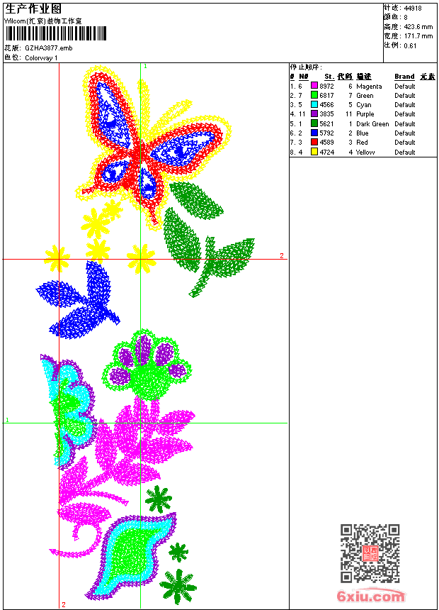 锁针花蝴蝶 emb花版参数: 大小:702.50 KB / 尺寸:172*424[毫米] / 针数:44918针 / 线色:8 / 格式:emb / 版本:9 版带文件需绣花软件方可打开,可配色打印导出各种格式或直接上机绣。如无绣花软件可下载1:1模拟效果图。 PNG图片信息:大小:0.9(MB) /图宽*高:650x1603(像素) emb下载 1:1图下载 关闭 相关花版: 熊卡通 简单曲线 曲线领抽象 简单领 简单抽象曲线 亮片 抽象条带几何 简单花 字母剑 十字绣花 衣领 蝴蝶 简单花 简单花 传统花 米奇卡通 抽象衣角 狮子卡通条 LOVE字母 衣花点玫瑰 简单花 点点衣边 抽象曲线单针 读书女孩人物 马赛克花 网格花裙衣 简单花对称 字母A 章仔 卡通贴布 抽象花裙
