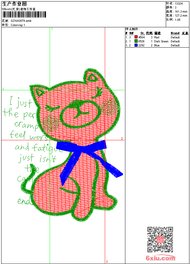 猫动物 emb花版参数: 大小:57.00 KB / 尺寸:127*161[毫米] / 针数:13324针 / 线色:3 / 格式:emb / 版本:9 版带文件需绣花软件方可打开,可配色打印导出各种格式或直接上机绣。如无绣花软件可下载1:1模拟效果图。 PNG图片信息:大小:0.3(MB) /图宽*高:482x611(像素) emb下载 1:1图下载 关闭 相关花版: 字母angel 锁针花蝴蝶 熊卡通 简单曲线 曲线领抽象 简单领 简单抽象曲线 亮片 抽象条带几何 简单花 字母剑 十字绣花 衣领 蝴蝶 简单花 简单花 传统花 米奇卡通 抽象衣角 狮子卡通条 LOVE字母 衣花点玫瑰 简单花 点点衣边 抽象曲线单针 读书女孩人物 马赛克花 网格花裙衣 简单花对称 字母A 章仔