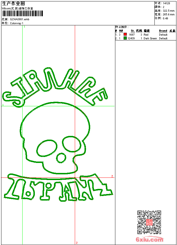 骷髅字母 emb花版参数: 大小:110.00 KB / 尺寸:266*323[毫米] / 针数:14128针 / 线色:2 / 格式:emb / 版本:9 版带文件需绣花软件方可打开,可配色打印导出各种格式或直接上机绣。如无绣花软件可下载1:1模拟效果图。 PNG图片信息:大小:0.5(MB) /图宽*高:1005x1220(像素) emb下载 1:1图下载 关闭 相关花版: 裙花传统复杂 猫动物 字母angel 锁针花蝴蝶 熊卡通 简单曲线 曲线领抽象 简单领 简单抽象曲线 亮片 抽象条带几何 简单花 字母剑 十字绣花 衣领 蝴蝶 简单花 简单花 传统花 米奇卡通 抽象衣角 狮子卡通条 LOVE字母 衣花点玫瑰 简单花 点点衣边 抽象曲线单针 读书女孩人物 马赛克花 网格花裙衣 简单花对称