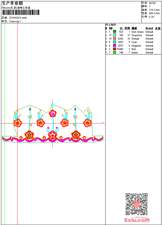 花裙边 emb花版参数: 大小:123.00 KB / 尺寸:680*319[毫米] / 针数:26726针 / 线色:7 / 格式:emb / 版本:9 版带文件需绣花软件方可打开,可配色打印导出各种格式或直接上机绣。如无绣花软件可下载1:1模拟效果图。 PNG图片信息:大小:1.0(MB) /图宽*高:2573x1208(像素) emb下载 1:1图下载 关闭 相关花版: 树花传统 单针曲线领 经典花 裤袋 传统吉祥龙鱼凤凰 字母FITCH 米奇卡通 亮片 几何块 字母曲线 网格太阳花 卡通脸 马赛克领衣 抽象曲线花 女孩人物 花衣胸 网格花 单针曲线 仿多色水溶领花 复杂玫瑰花条 花条 领羽毛 花传统 兔卡通 平针抽象 字母章仔 菊花 狗狗动物 汽车卡通 亮片 简单花 裤袋皇冠