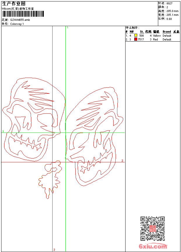 骷髅 emb花版参数: 大小:30.50 KB / 尺寸:205*205[毫米] / 针数:8027针 / 线色:2 / 格式:emb / 版本:9 版带文件需绣花软件方可打开,可配色打印导出各种格式或直接上机绣。如无绣花软件可下载1:1模拟效果图。 PNG图片信息:大小:0.1(MB) /图宽*高:776x776(像素) emb下载 1:1图下载 关闭 相关花版: 简单花 抽象领曲线 花条带 抽象花裙 章仔SPORT 简单花条 星状领 抽象男单针 传统花 奥运五环 壁虎 传统花 简单花 镂空圆 简单蝴蝶 golf人 十字绣花 熊卡通 几何点点领抽象 亮片 珠片领锁针 蜘蛛网 字母小鸡 抽象简单花 鱼水草衣 圆点它它米 抽象蝴蝶花 包针曲线领 包针曲线领 简单几何领 马赛克领几何